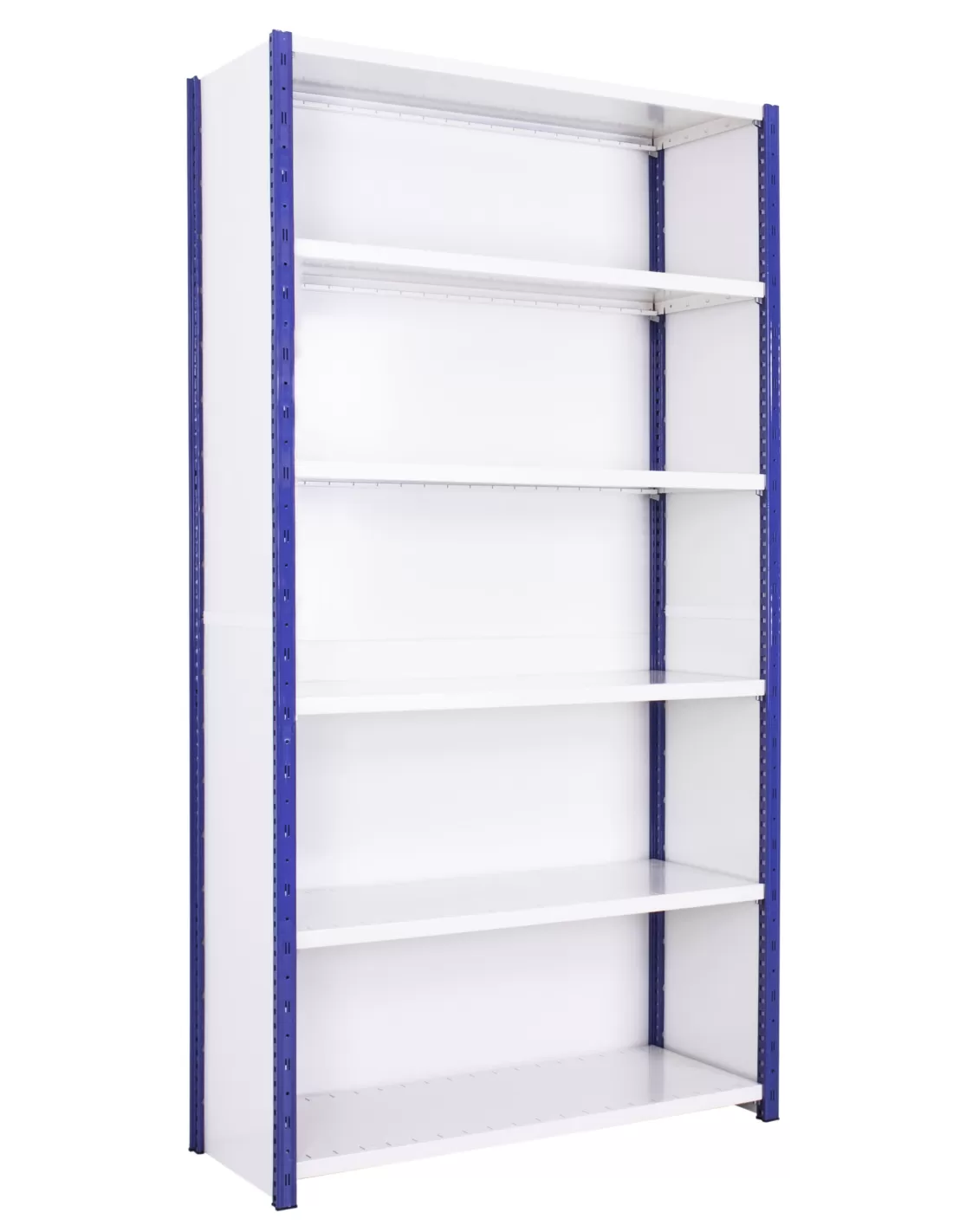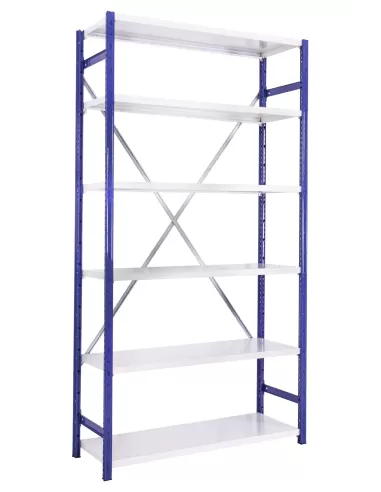 The Anco Expo 4D Starter Bay is a high-quality, medium-duty shelving system with six adjustable shelves (120kg per level) and a smart blue and white painted finish. Designed for commercial and light industrial use, shelves adjust every 25mm for flexible storage. Multiple sizes available, with fast 5-day delivery for standard units and extended lead times for large projects. Ideal for workshops, stockrooms, and archive storage