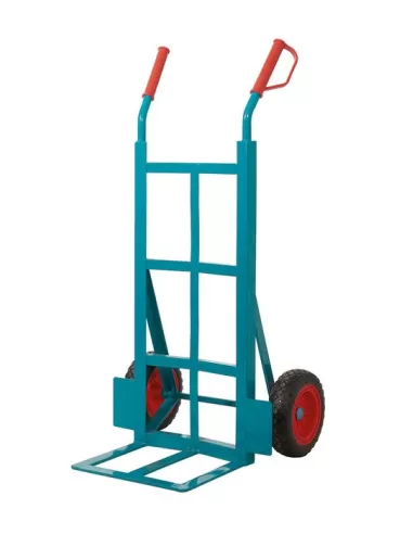 This sack truck with its strong angle iron and open toeplate is ideal for heavier and bulkier loads. Load Capacity of 300kg and featuring REACH compliant pneumatic puncture-proof wheels.
